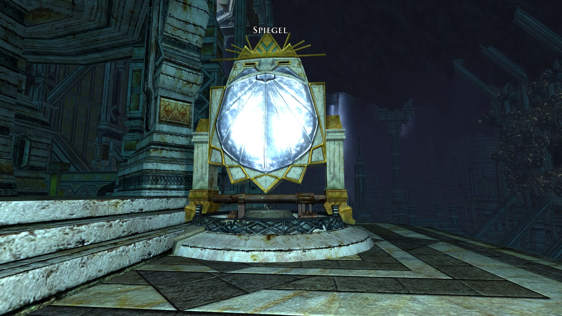 Aktiviert nun diesen. Es wird euch wieder folgender Text angezeigt: Der Mondspiegel rastet ein und zeigt auf Vâr Nuchur.
